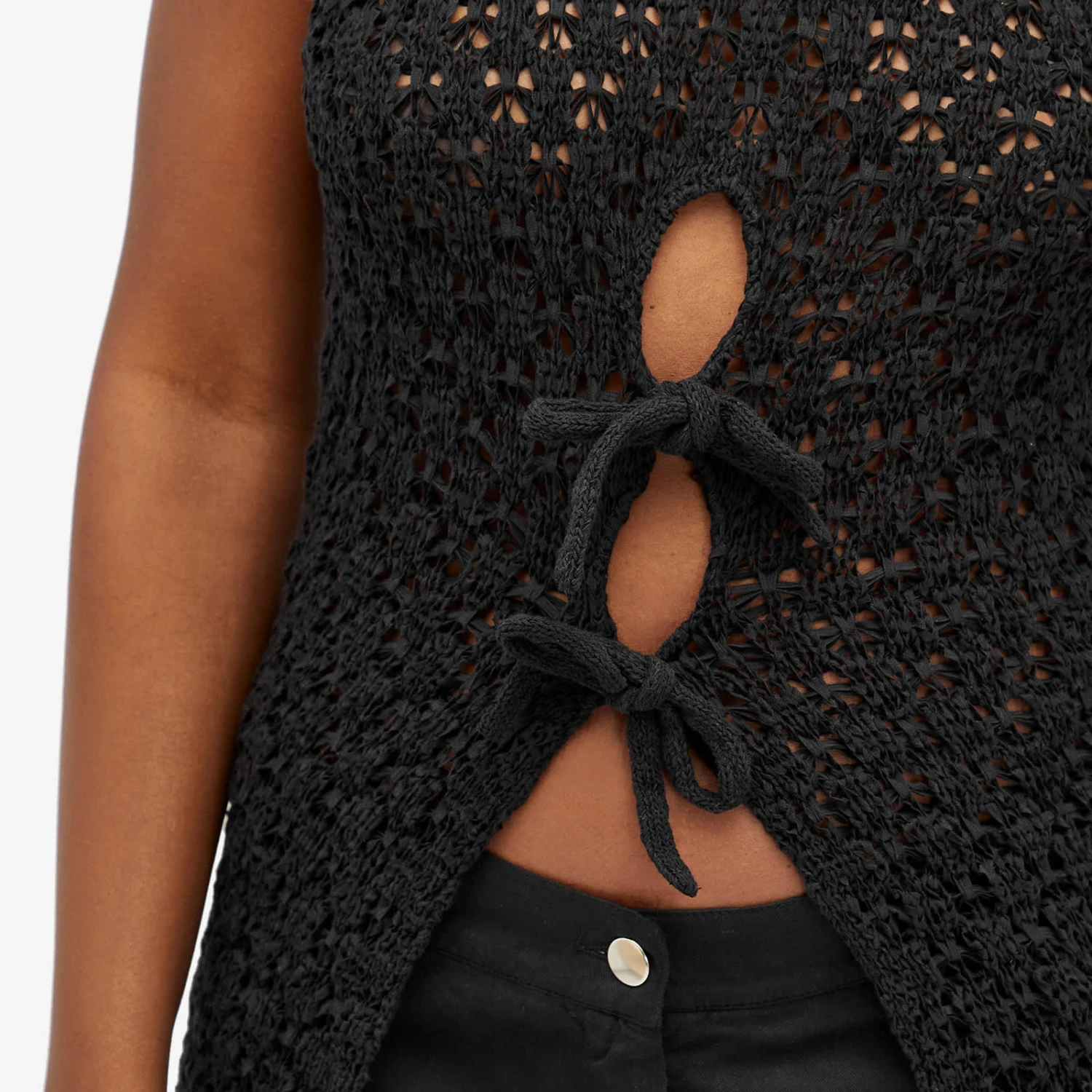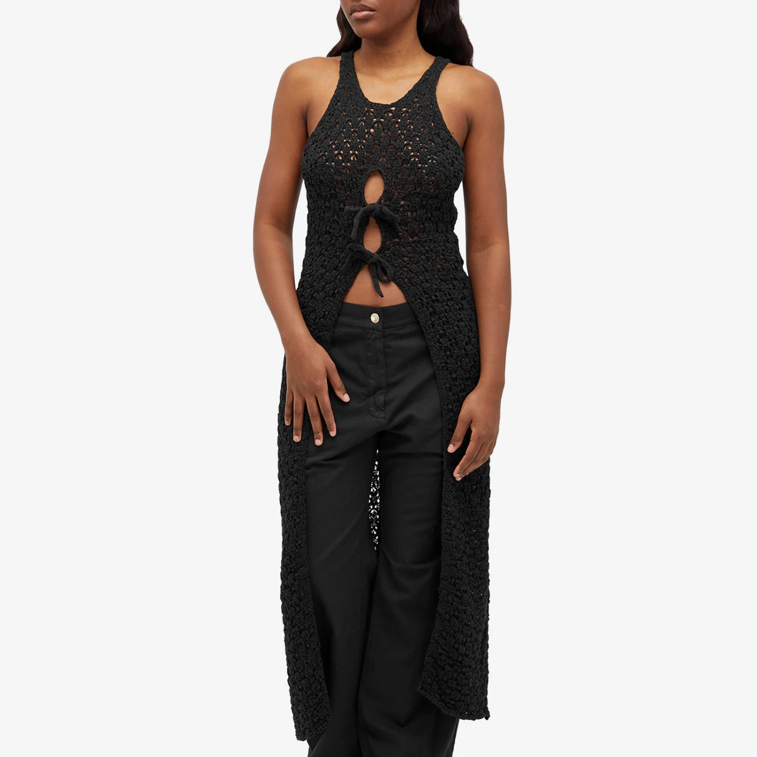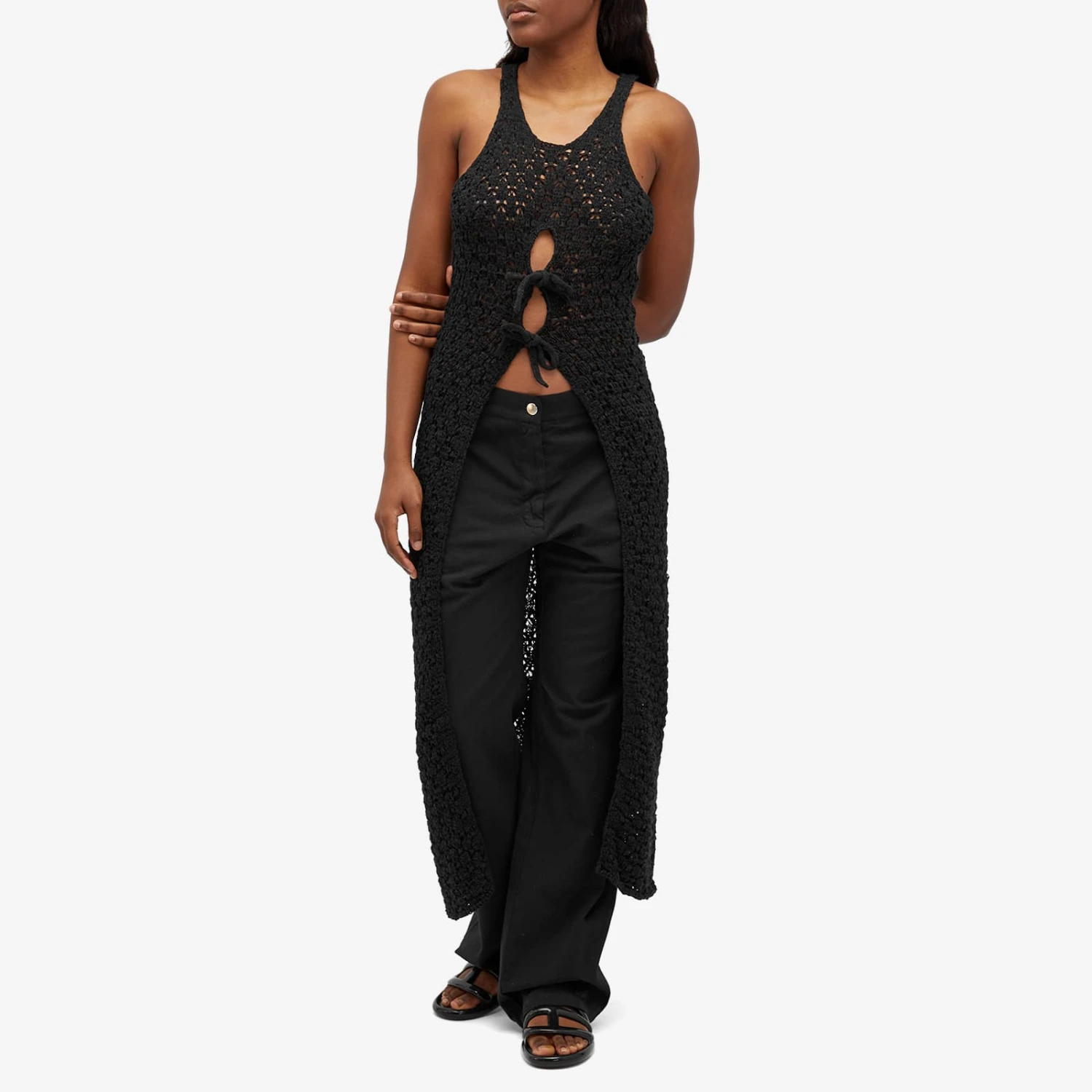 Meet your new favourite layering piece, the Holzweiler Wou Tape Yarn Dress. With a “fit-and-flare” silhouette, it boasts cut-outs with tie fastenings at the front and a subtle cut-out at the back. Its open-front skirt and wide-set yarn knit makes it perfect for wear over baggy dresses, sleek maxi dresses, or even swimwear.