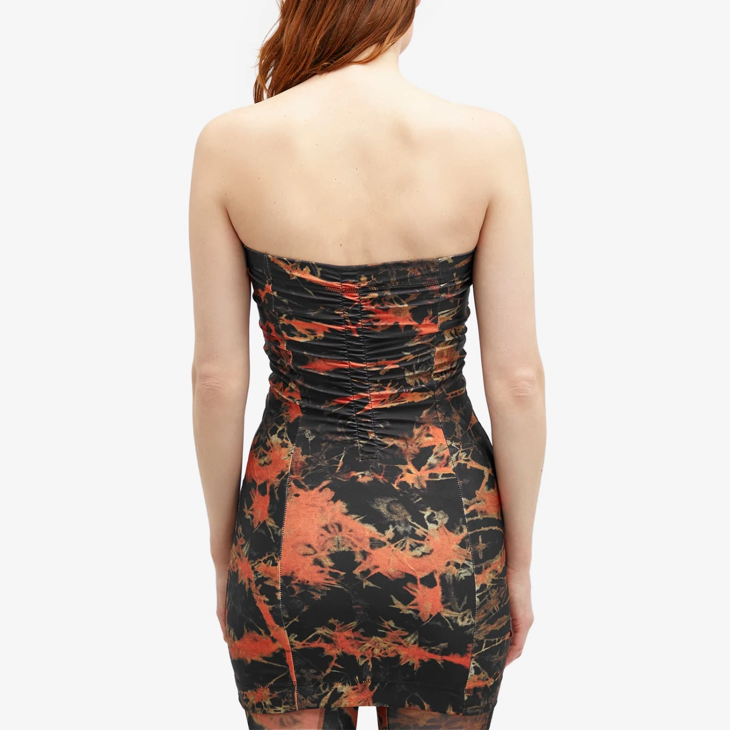 KNWLS captures the essence of speed in its SS24 collection, channeling a biker’s spirit. It continues to break the mould with designs like the Skinn Dress, updated this season in a daring Acid Flame print. Soft, stretchy and form-fitting, this strapless style is ruched at the bust, waist and back.