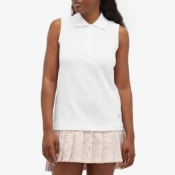 The Thom Browne Hector Intarsia Polo Mini Dress marries casual charm with sartorial elegance. Crafted from merino wool, this sleeveless style features the playful Hector mascot and iconic 4-bar stripe detail. With its contrasting collar and grosgrain loop tab, it perfectly encapsulates the brand’s ethos of modernised tradition and impeccable craftsmanship.